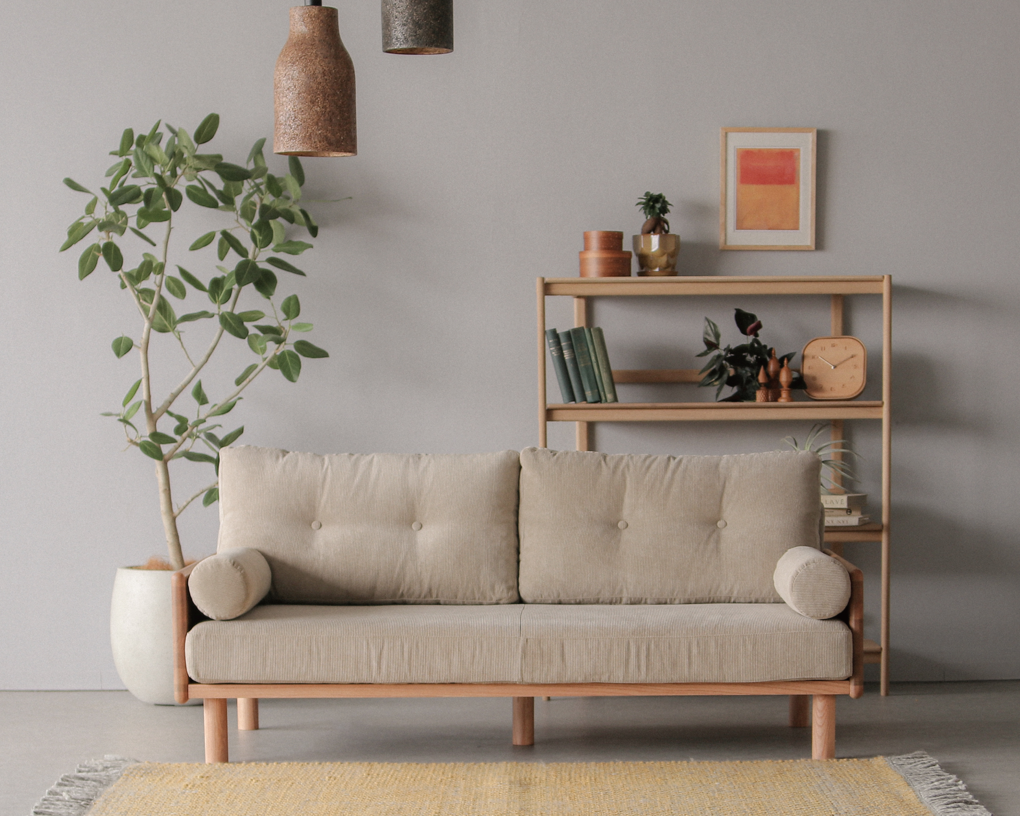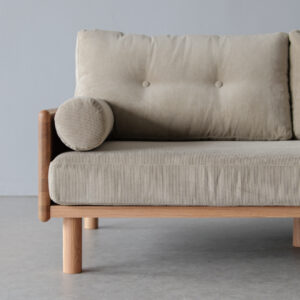 四角く整ったシルエットに、柔らかなクッションを合わせて見た目の端正さと座り心地のやさしさを両立したソファ。