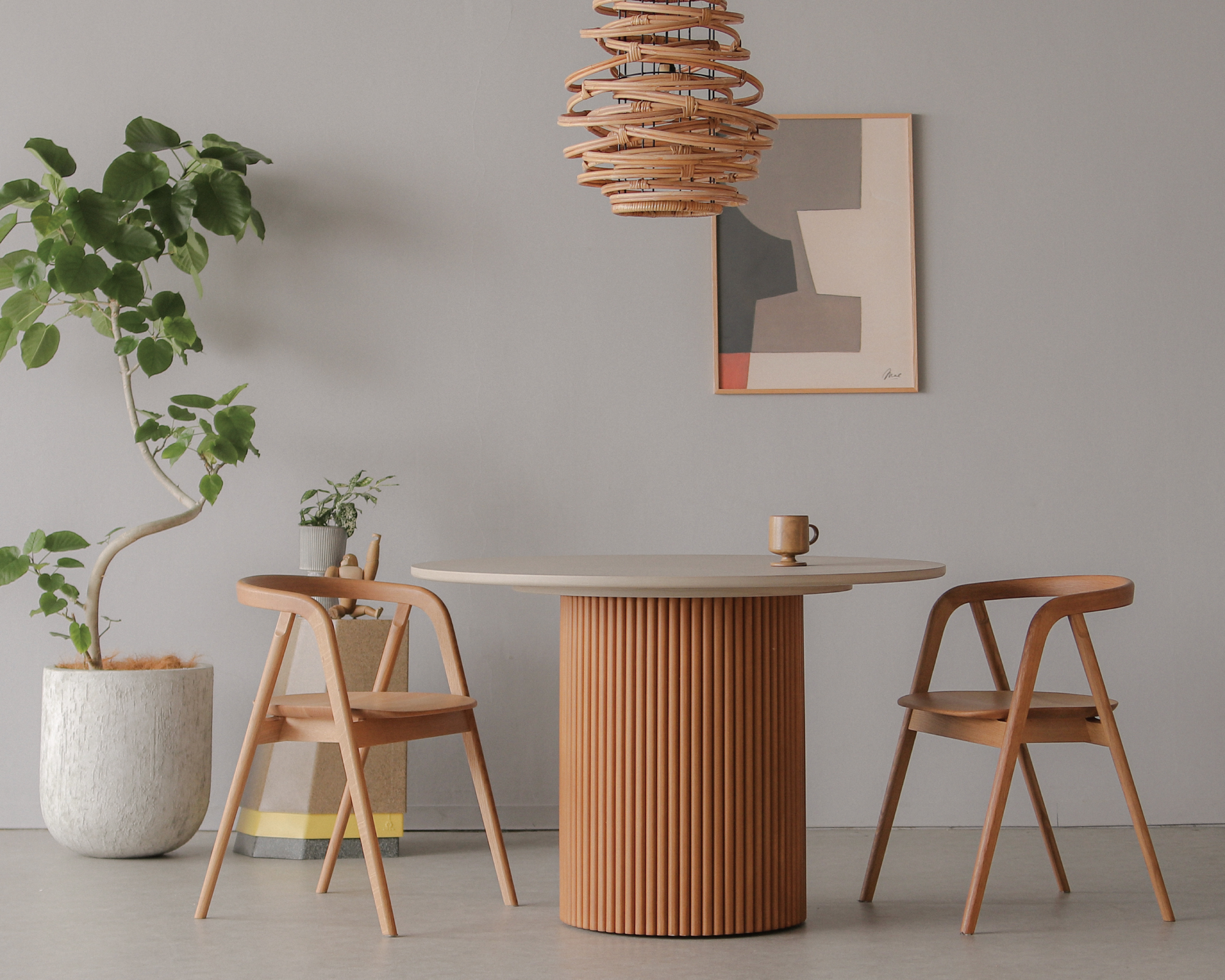 日々の食卓としてはもちろん、ワークスペースやカフェシーンにも自然に馴染みます。