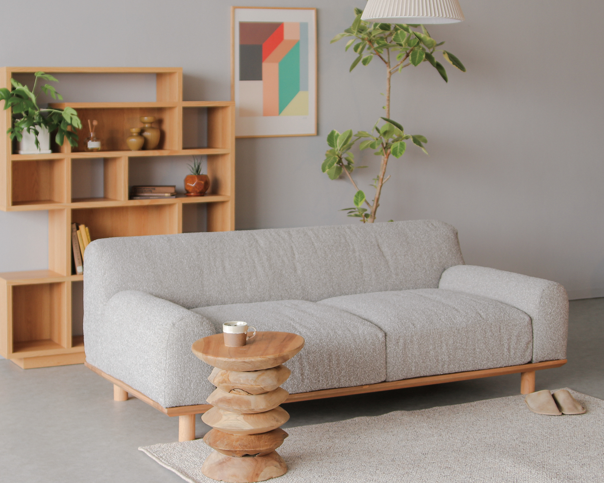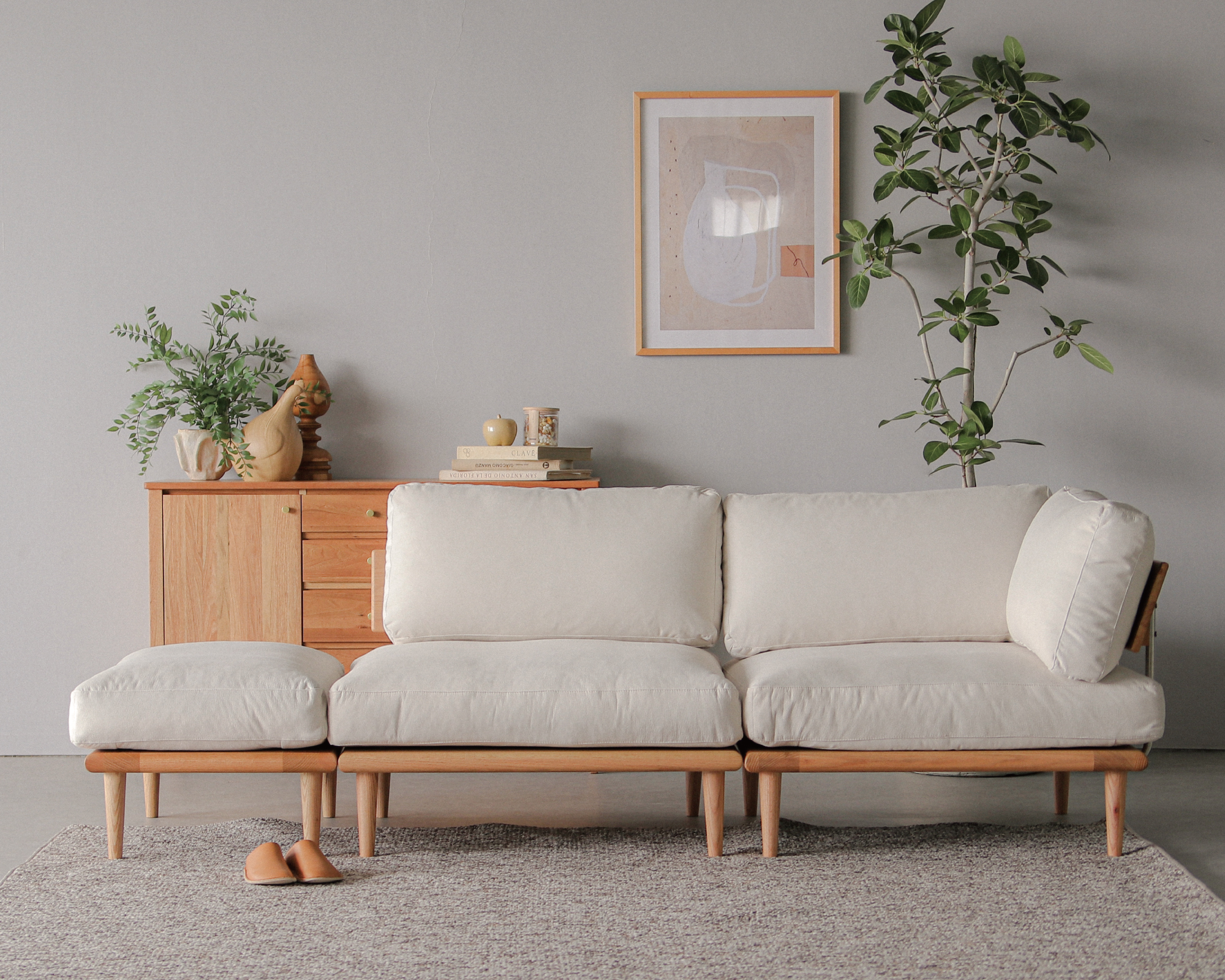 低めの設計とスリムな脚部が、空間に広がりを生み出し、どんなインテリアにもすっと溶け込む佇まいです。