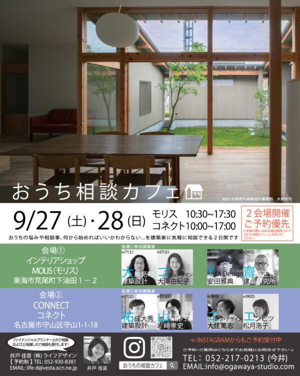 9月27日(土)・28日(日)の2日間、特設スペースにておうちの相談カフェを行います。
