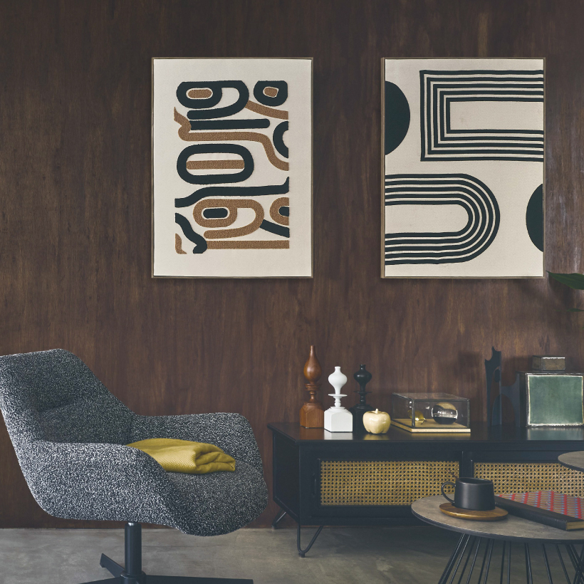 ペイントのアートとは一味違う、個性的な風合いの刺繍アートは存在感がありながら、特別な空間造りを演出してくれます。