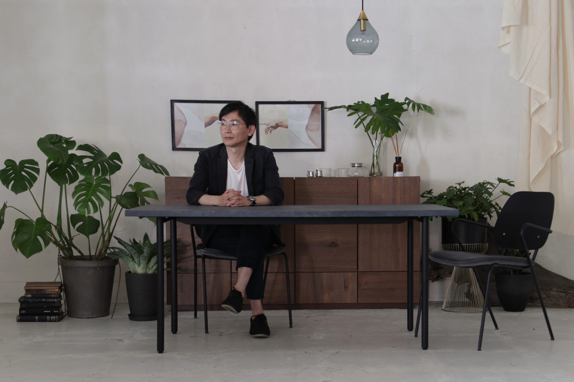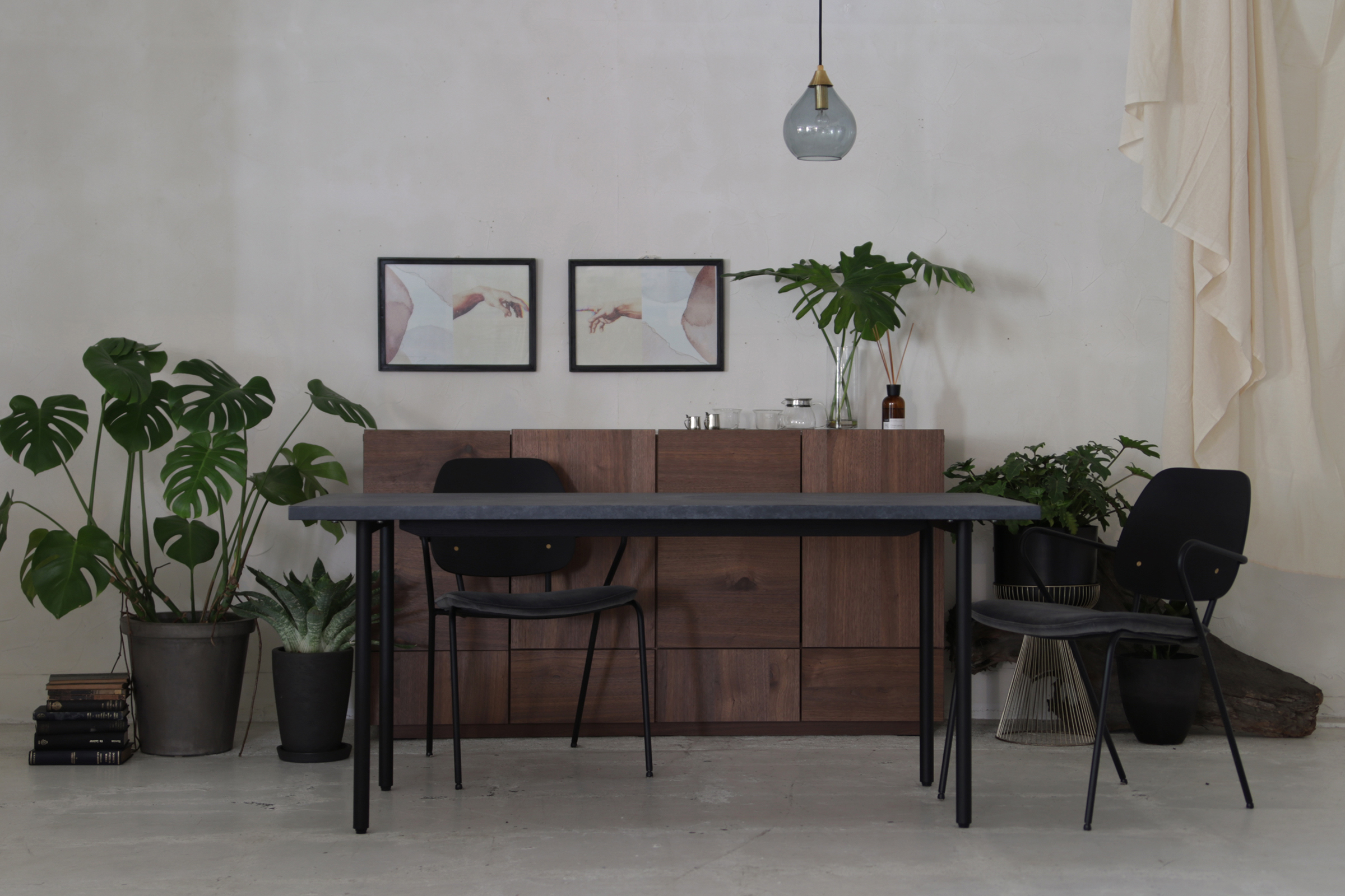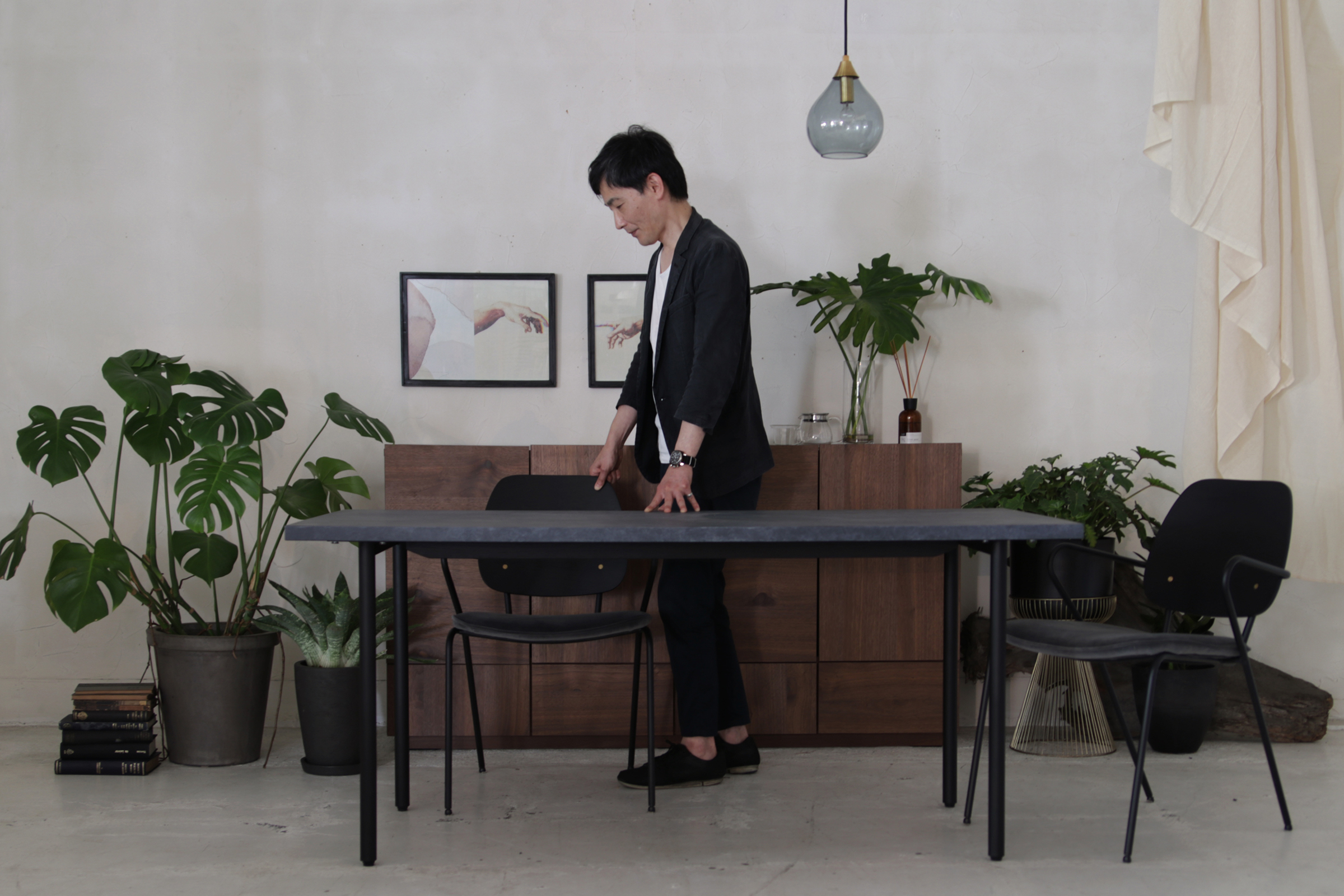 背座:オーク突き板 マットブラックステイン仕上げ