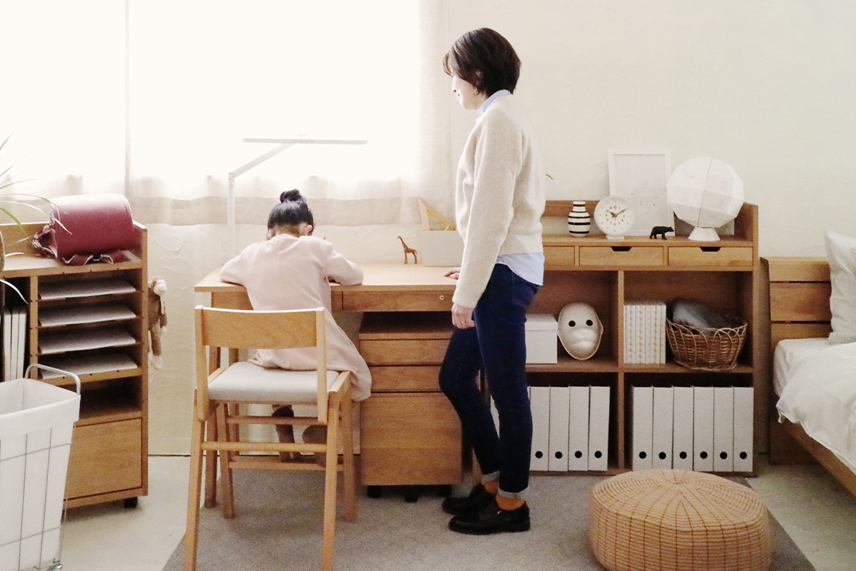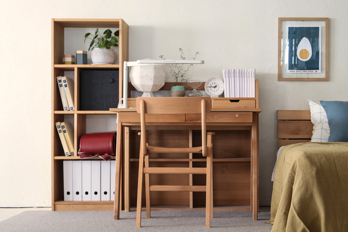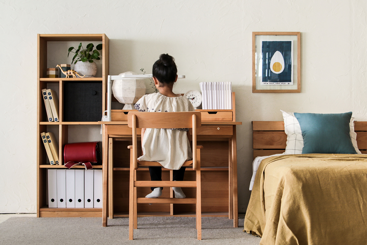 その時その時で「+」足していけるキッズデスクは無駄がなく、一人ひとりの使い方に合わせたデスクがお選びいただけます。
