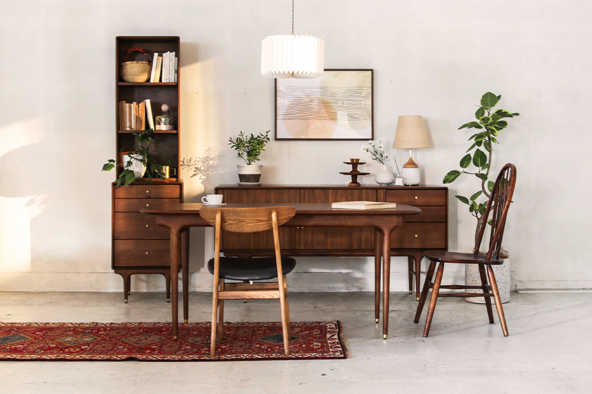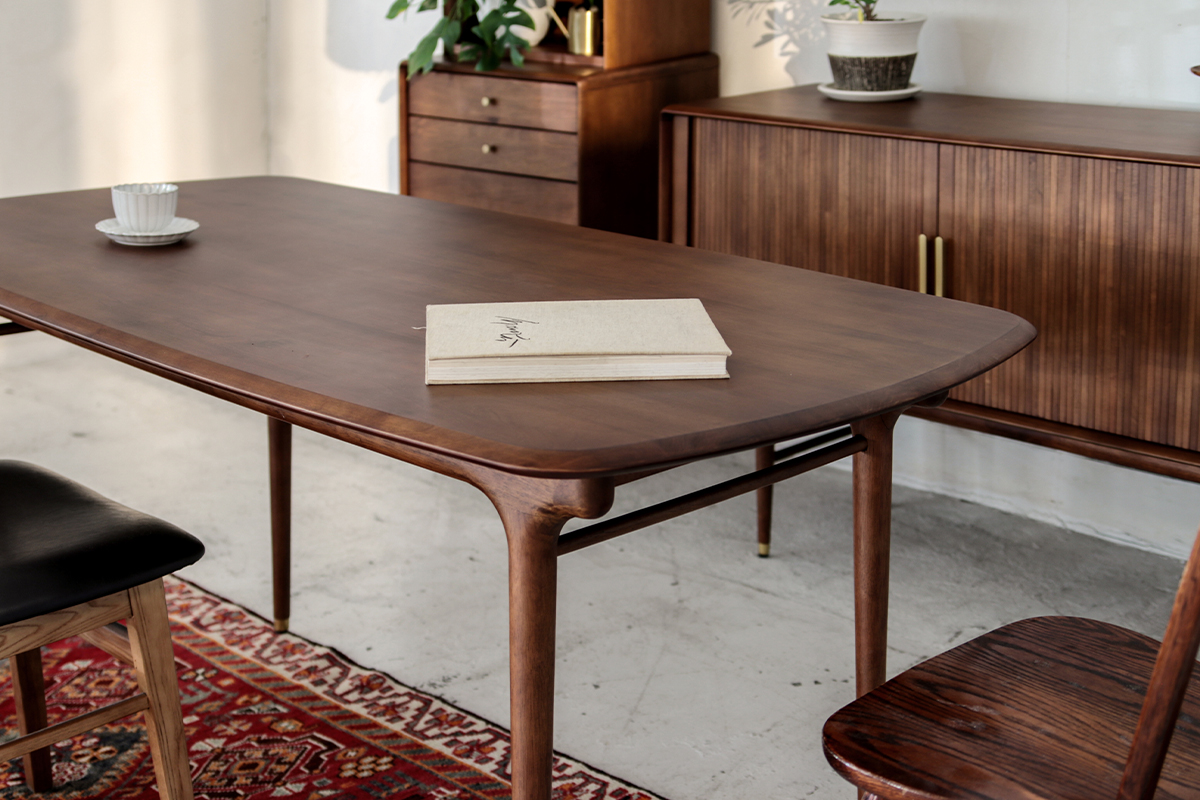 北欧デザインの黄金期と言われる1950〜60年代に製造された北欧ヴィンテージ家具を、現代の製造技術を駆使してリファインしたダイニングテーブル 。