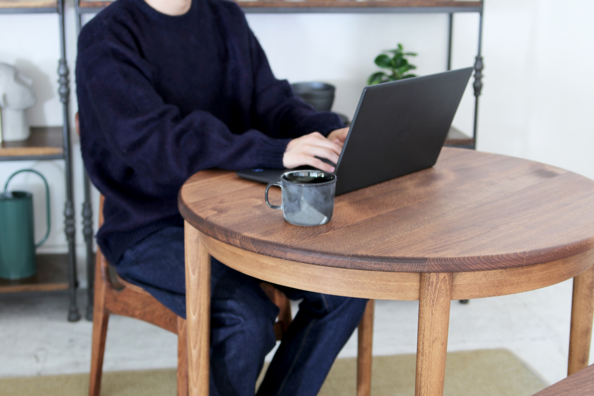 直径84cmとコンパクトで1~2人用におすすめのラウンドテーブル。