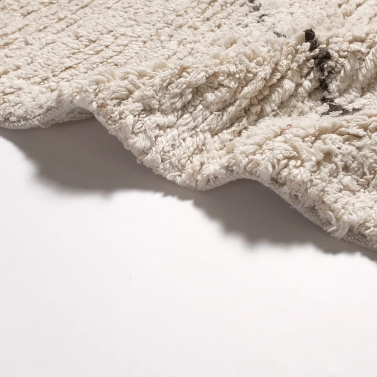 全て手作業で作られた商品のため、1点ごとに風合いが異なります。また、機械生産品と比べて遊び毛が出やすくなっております。こまめに掃除機がけを行ってください。