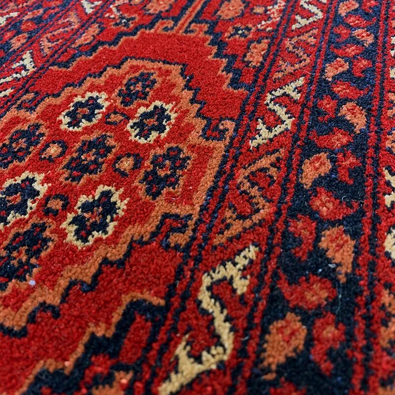 ヴィンテージラグのような細かい柄と深みのある赤色を機械織りで再現した人気のラグ。