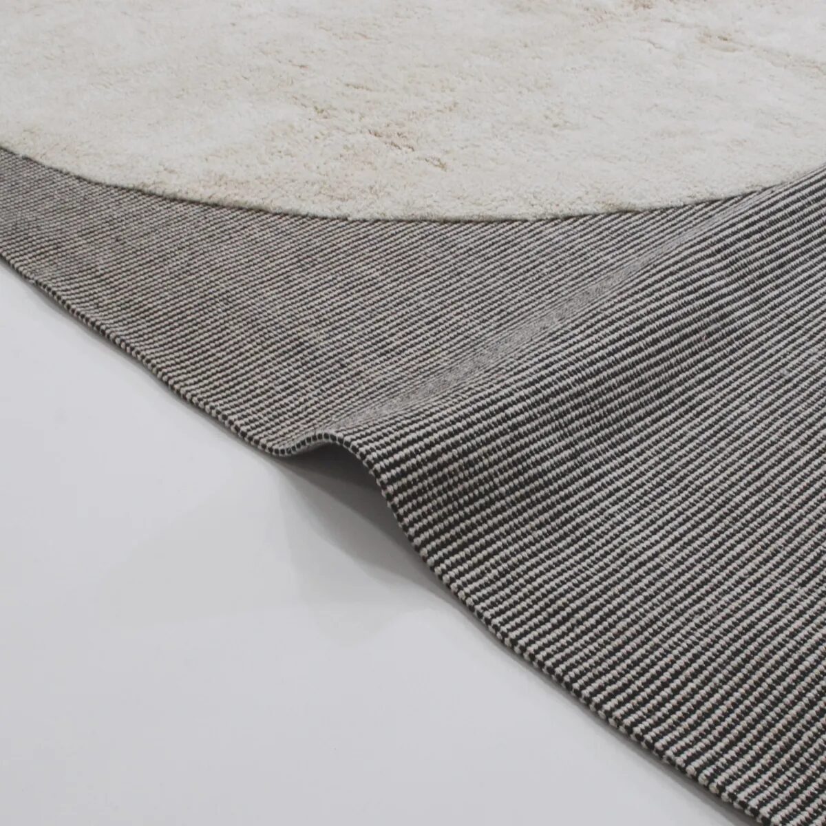 黒糸と織り合わせた基布にシャギーを植え込みました。アシンメトリーな曲線フォルムでお部屋のアクセントとしておすすめです。