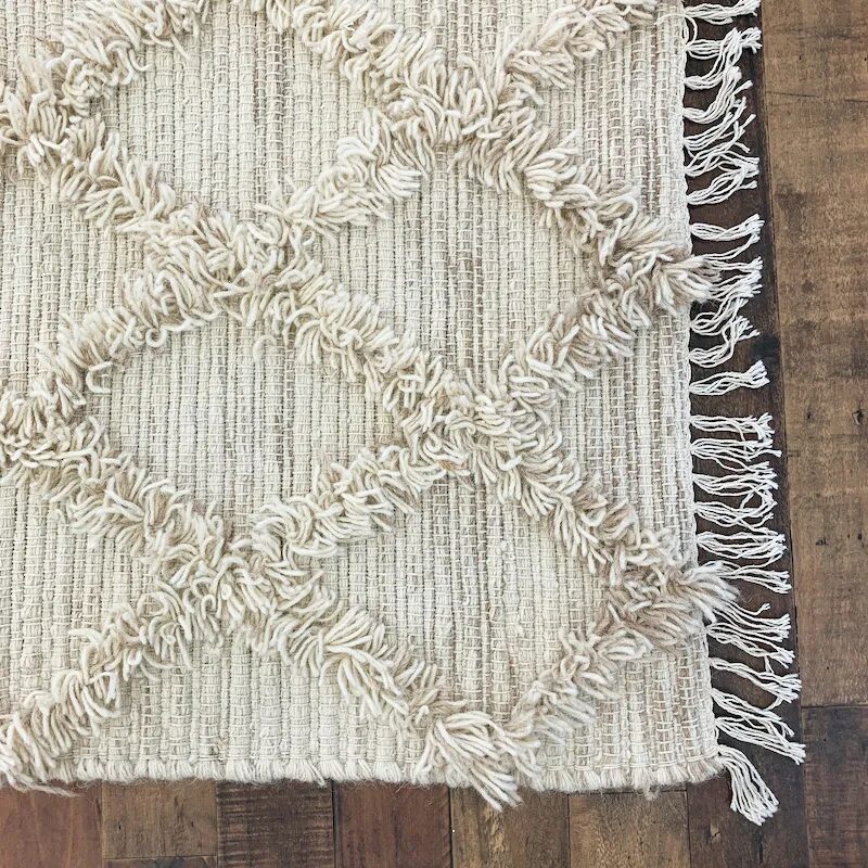 織りの変化だけでモチーフを表現したワントーンラグですが、