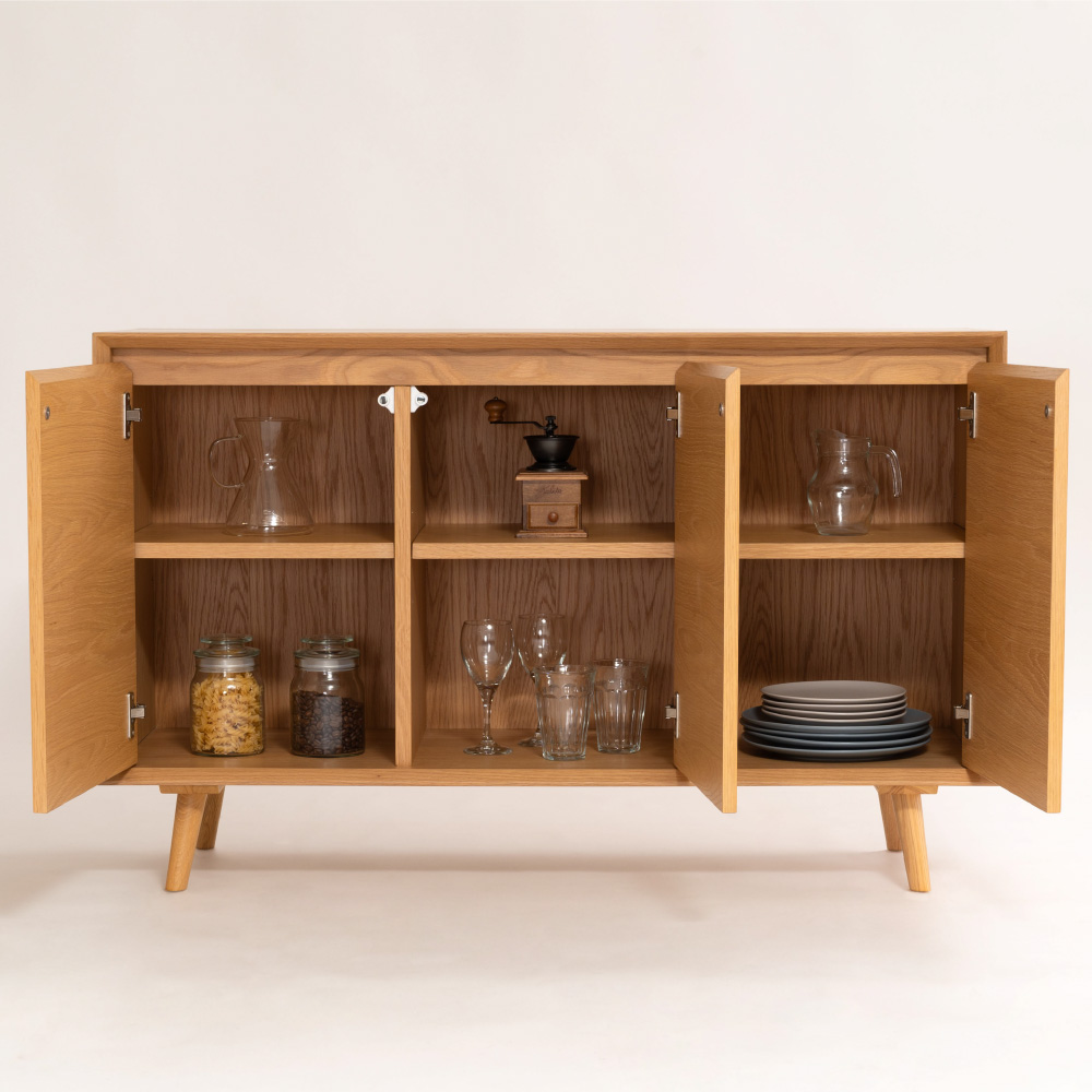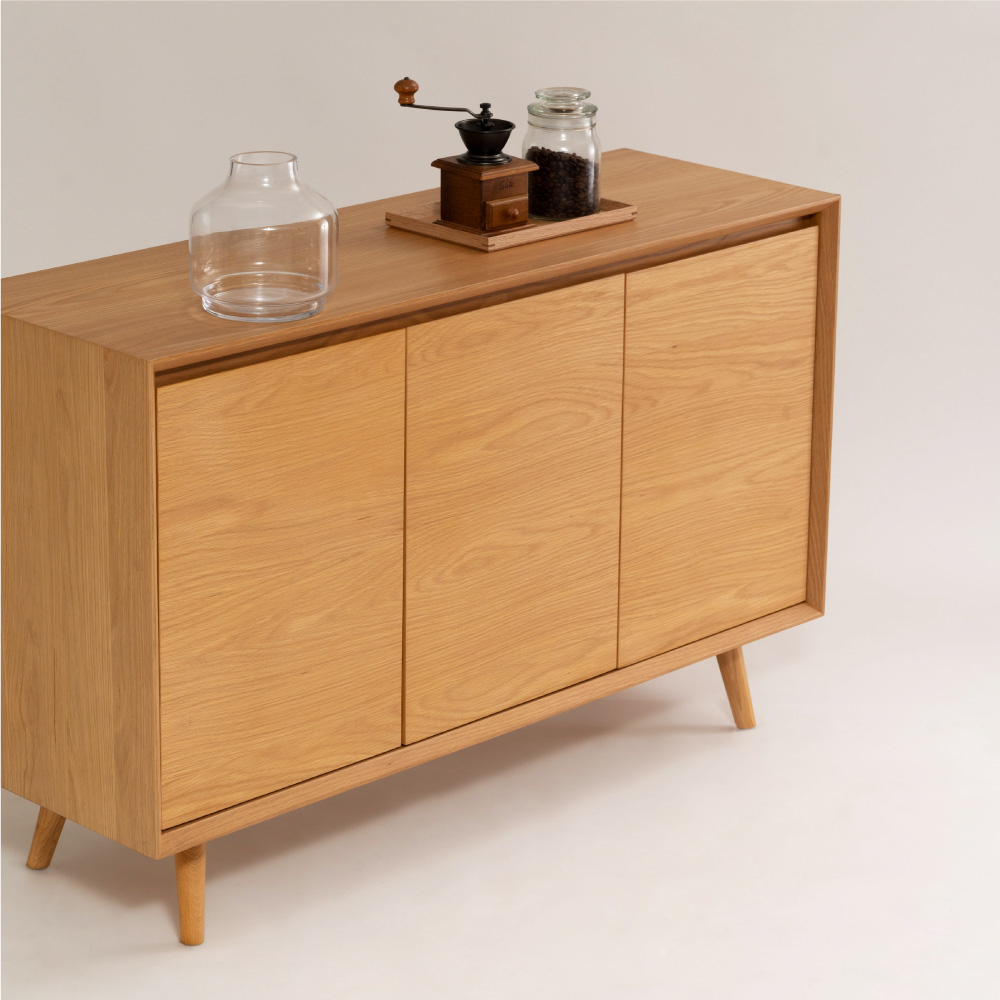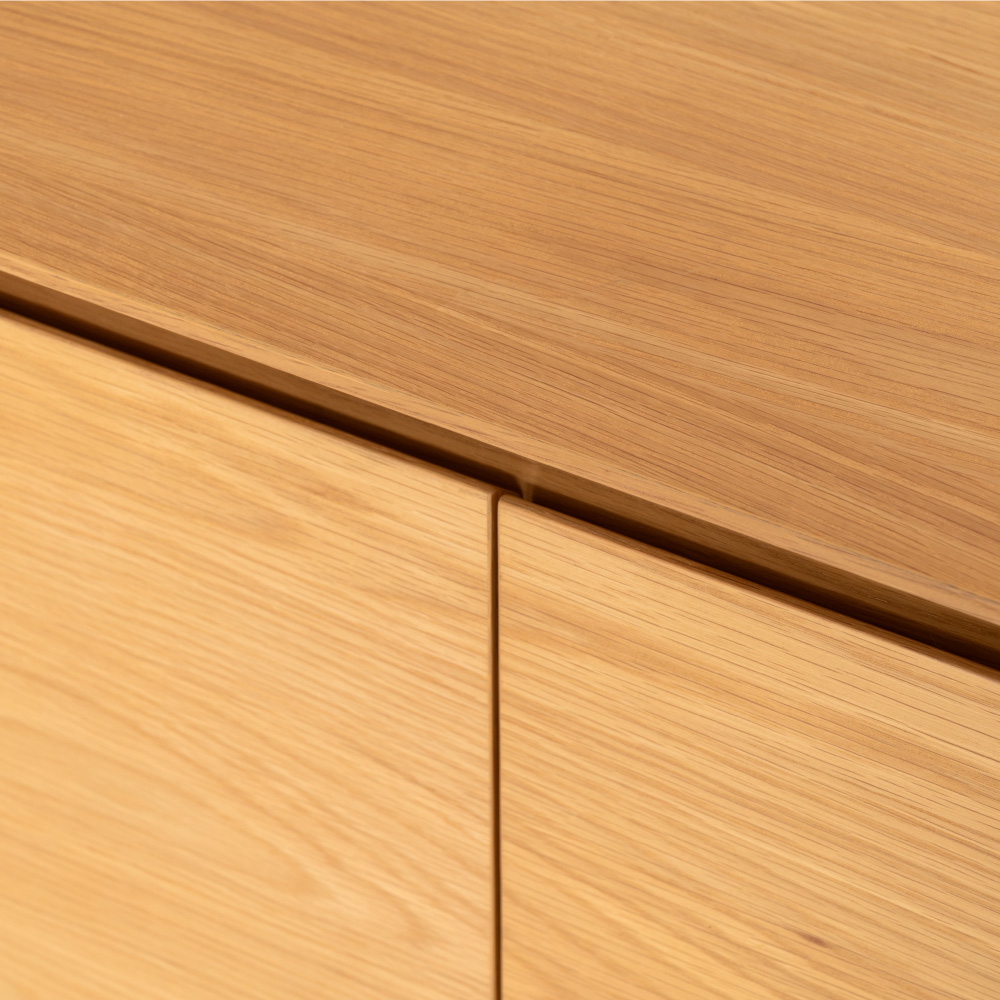 オークの天然木の風合いを大切にしたナチュラルな家具は、