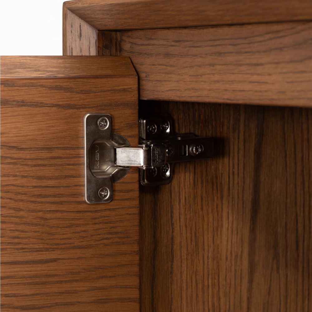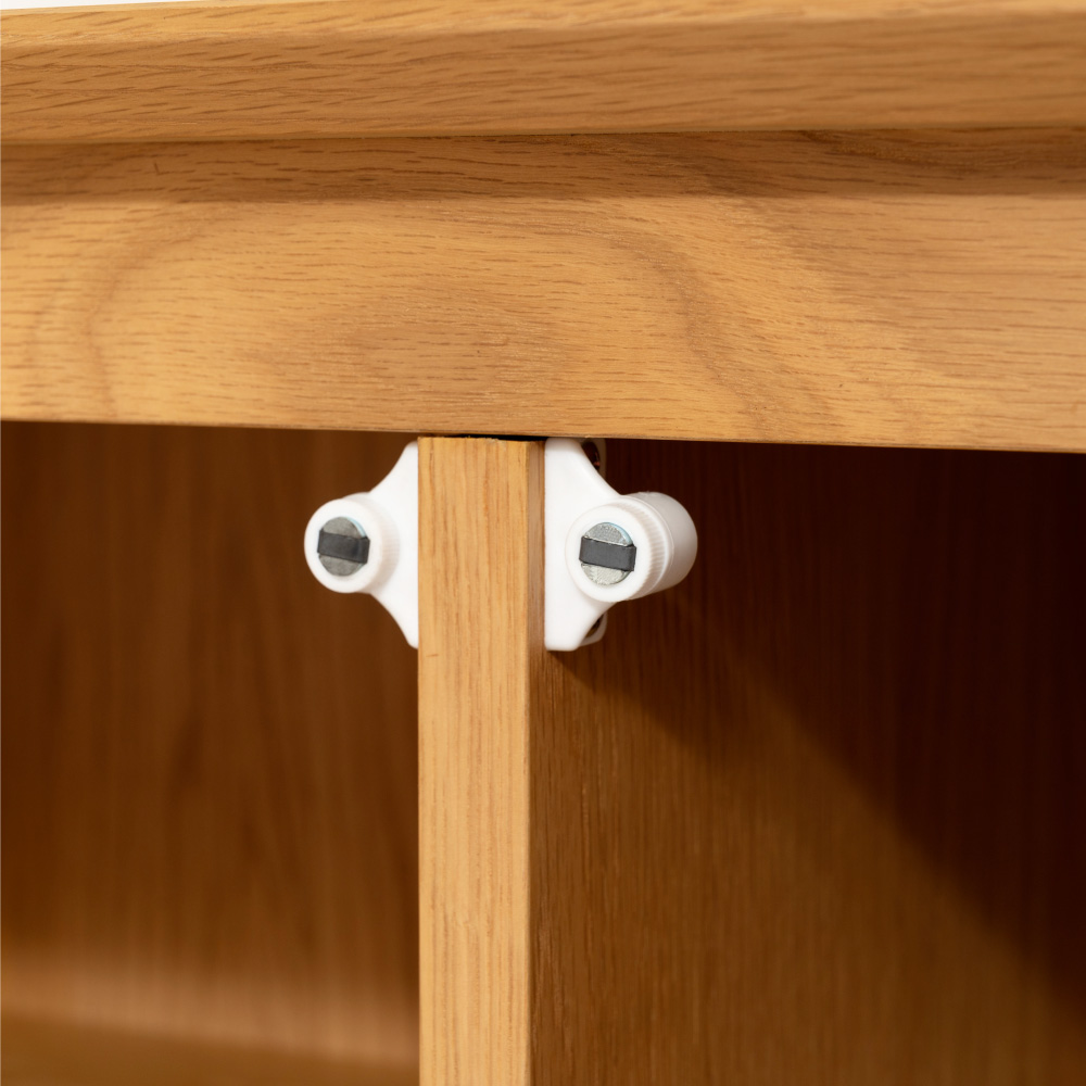 オープンタイプのシェルフと、扉付きのキャビネットを横並びに揃えればお部屋の統一感もアップします