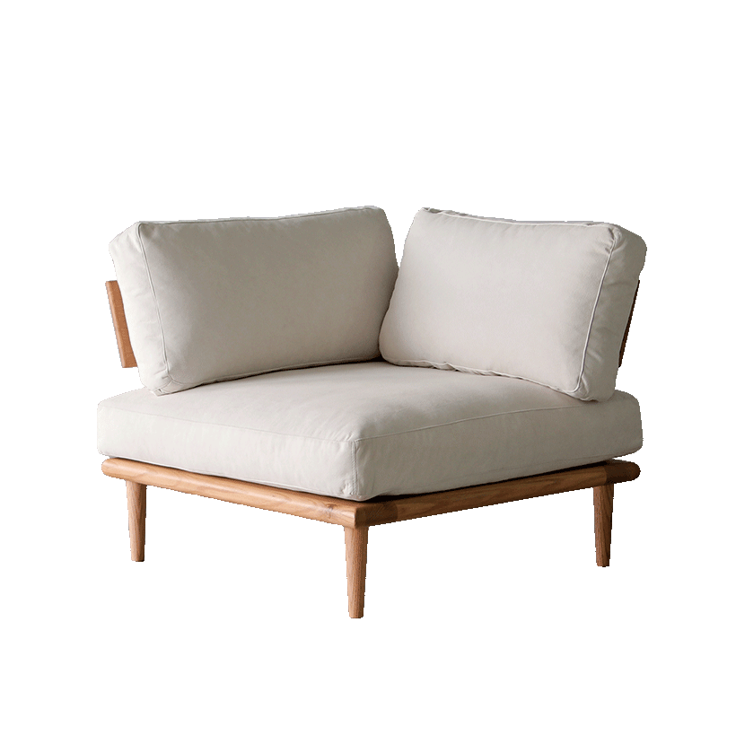 四角く整ったシルエットに、やわらかなクッションを合わせ、 見た目の端正さと座り心地のやさしさを両立させました。