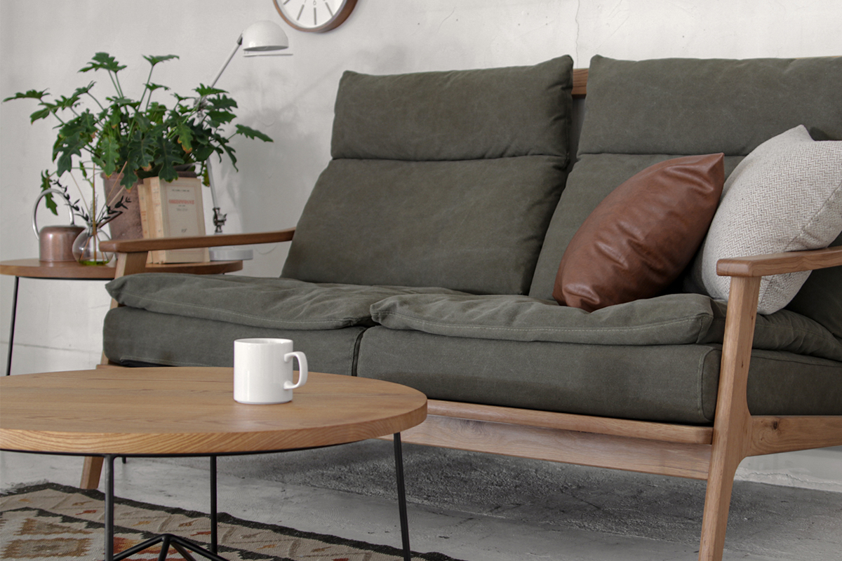 一般的なコーヒーテーブルとしては少し高さがありますが、 ソファに座ってご使用頂けるとピッタリです。