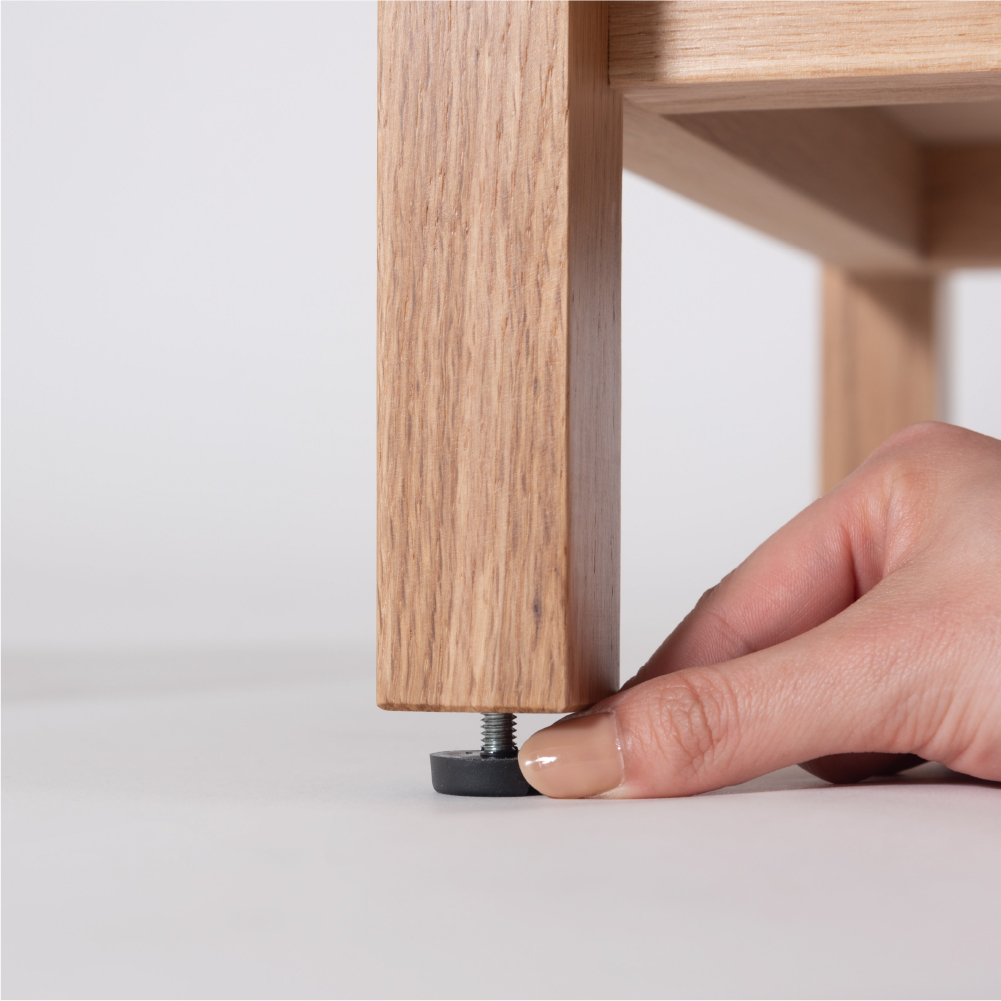 アジャスターを回すことで個々の脚の高さが微調節できるため、がたつきが生じた場合でもアジャスターを調節してがたつきを軽減させることができます。