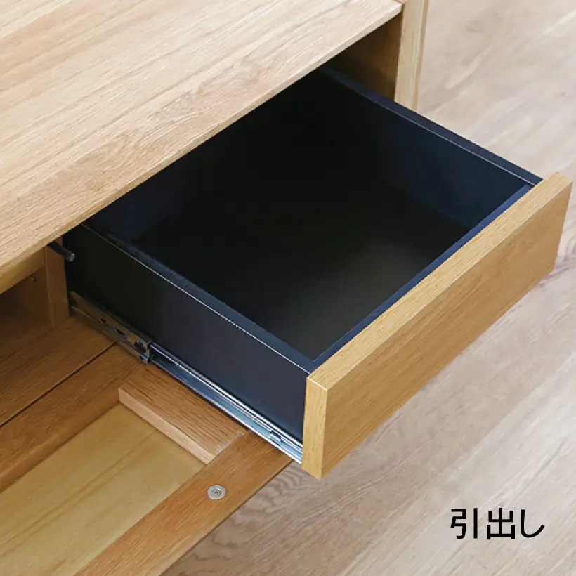 内部は引出しと稼働棚が付いており、高い収納性があります。