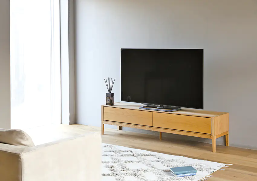 前面の板は木のデザインですが、扉を閉めた状態でもリモコンの電波は通ります。